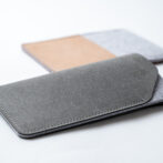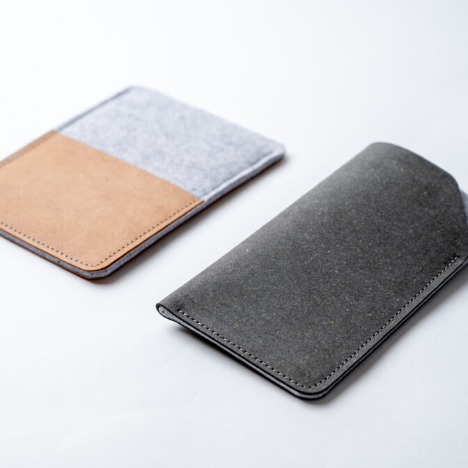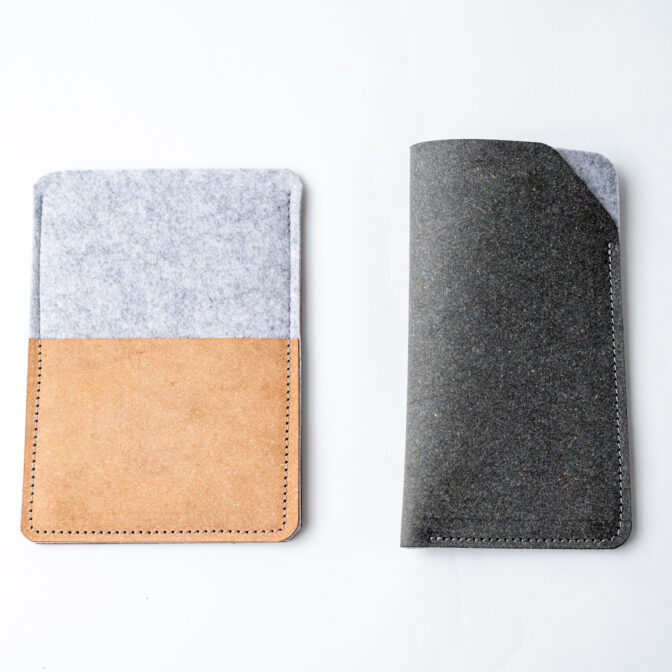 リサイクレザー**とフェルトを使用したスマホケースになります。