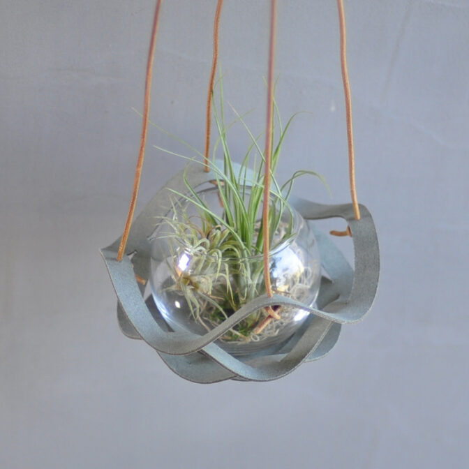 本革を使用しているので、植物や土を入れた花瓶を吊り下げるには十分な耐久性を持っています。