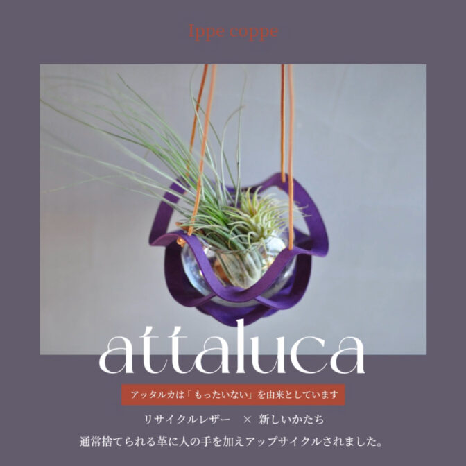 「attaluca」は、革製品の製作過程で通常は捨てられてしまう「床革」を活用した、新しいスタイルの革製品です。この商品は、環境に優しいだけでなく、ユニークでスタイリッシュなデザインが魅力です。ライフスタイルにぴったりの「attaluca」は、日常の中に自然と溶け込み、あなたの個性を引き立てます。