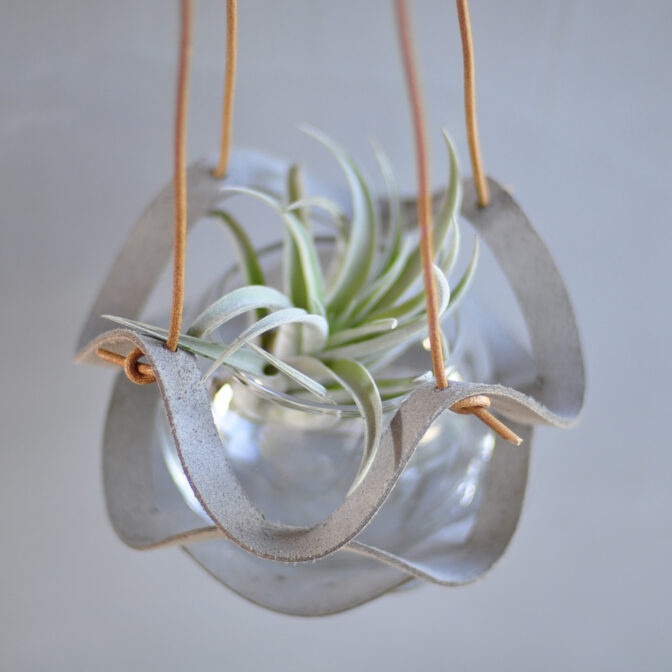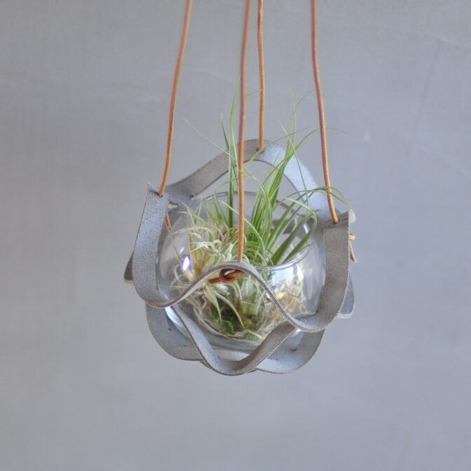 本革を使用しているので、植物や土を入れた花瓶を吊り下げるには十分な耐久性を持っています。